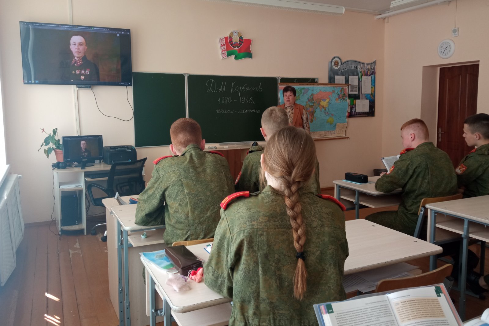 05.05.2025На уроках географии в 10 классах учитель Бадун Марина Викторовна рассказала учащимся о подвиге генерала Дмитрия Михайловича Карбышева, именем которого названа одна из улиц города Гродно. Карбышев - выпускник Сибирского кадетского училища. "Я солдат и остаюсь верен своему долгу," - ответил генерал на предложение сотрудничать с гитлеровцами, показав свою непоколебимую преданность и мужество.