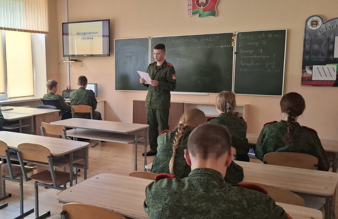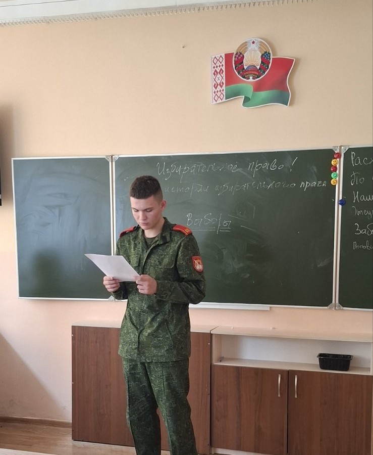17.10.202517 октября в 9 "Б" классе прошёл информационный час "Избирательное право. Из истории избирательного права", в ходе которого кадеты познакомились с историей формирования системы избрания и выборов, ознакомились с главами конституции Республики Беларусь об избирательном праве гражданина страны.