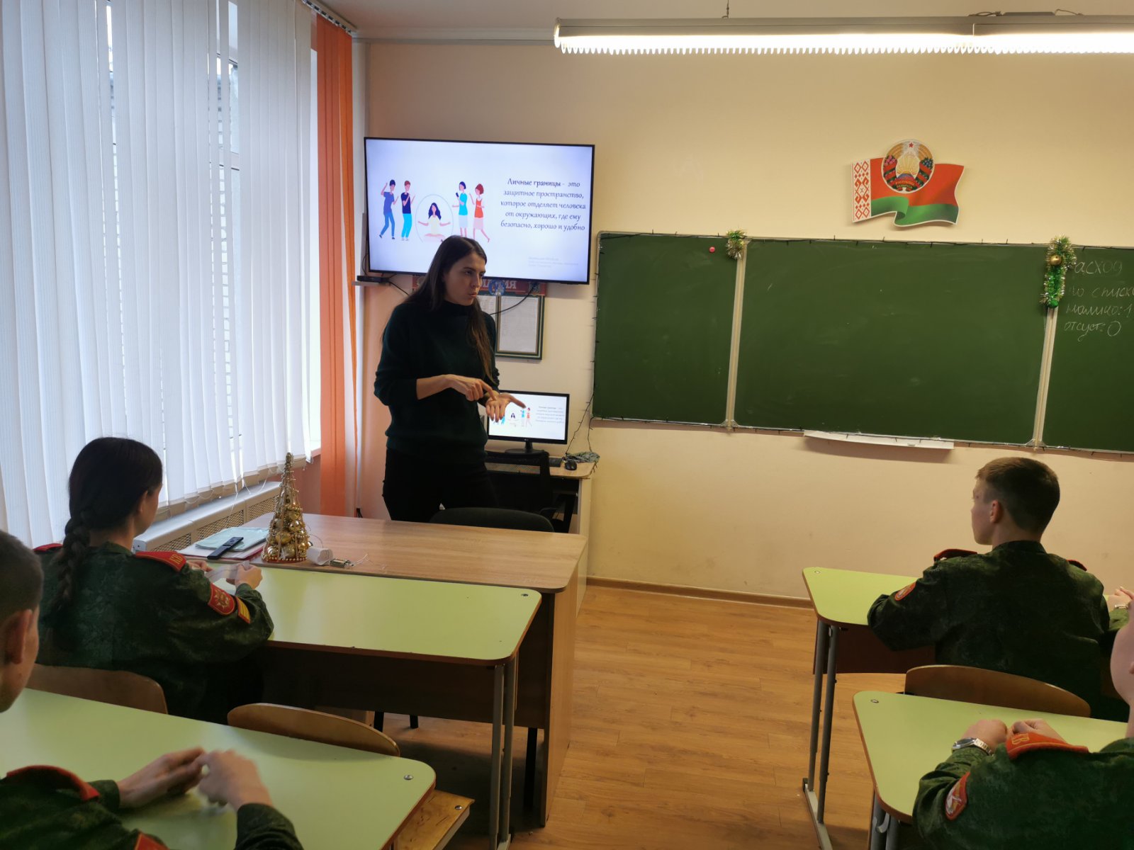08.12.20258 декабря в 10 "Б" был проведён классный час по тематическому курсу "Моё психологическое благополучие" на тему: "Личные границы и психологическое влияние". Кадеты познакомились с понятием "личные границы", их разновидностями и учились их отстаивать.