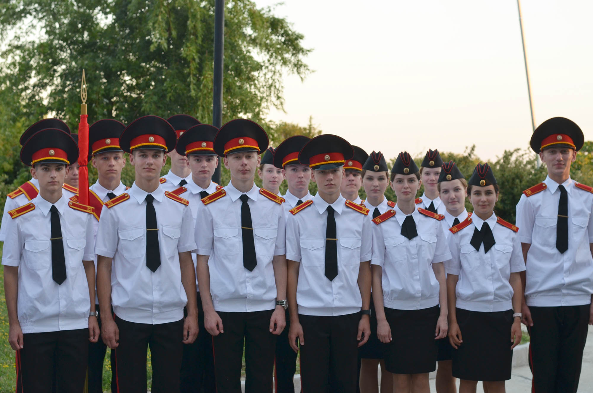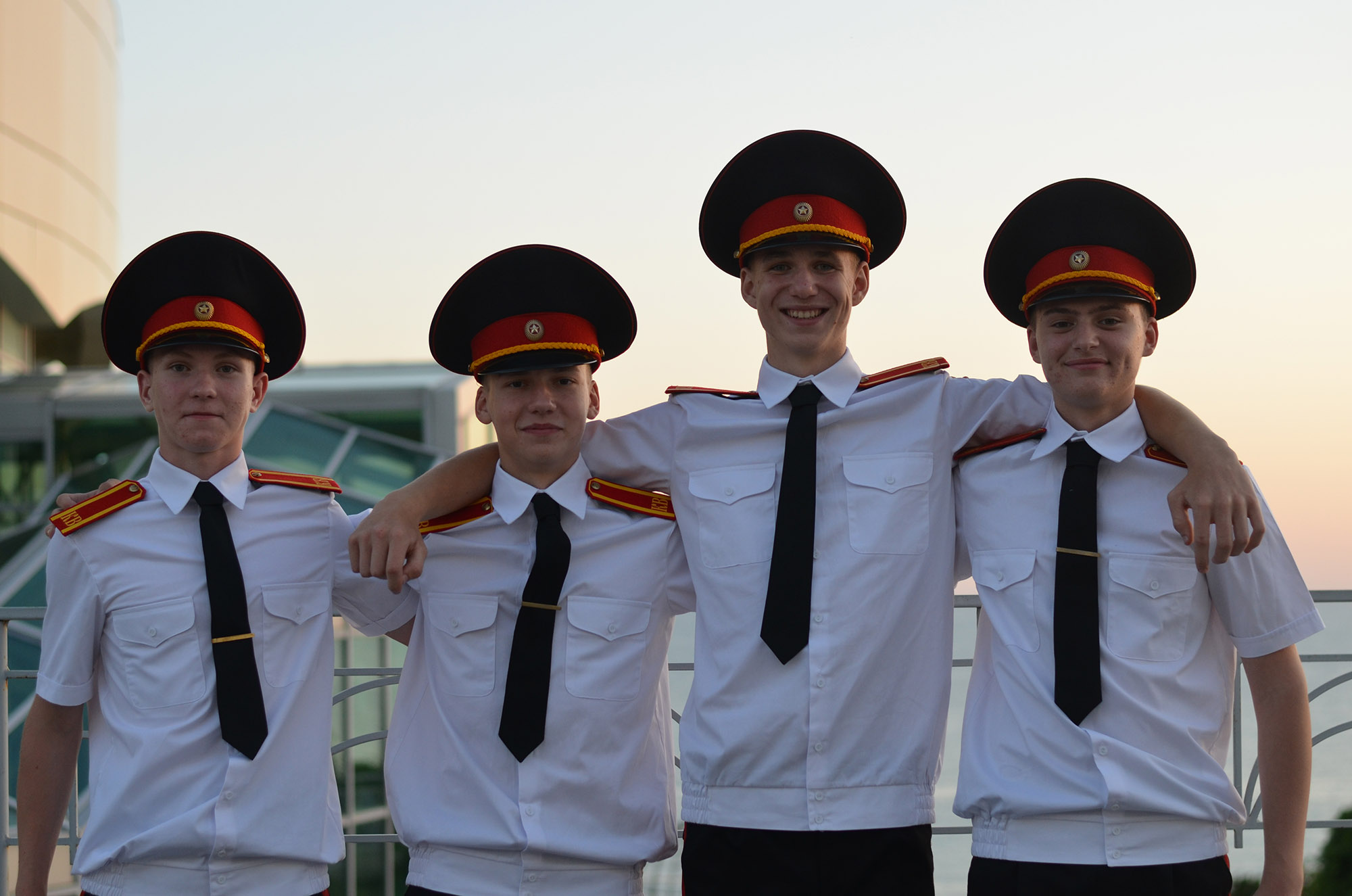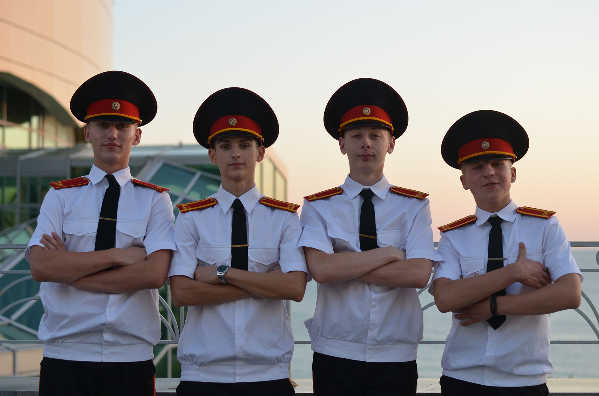 На следующий день мы все пошли на море. Вечером прошёл конкурс знаменных групп, в котором участвовали кадеты от Гродненского областного кадетского училища: Новосад Глеб, Лис Святослав, Куришта Евгений и Фирсов Артём. Они продемонстрировали свои навыки и мастерство в строевой подготовке.