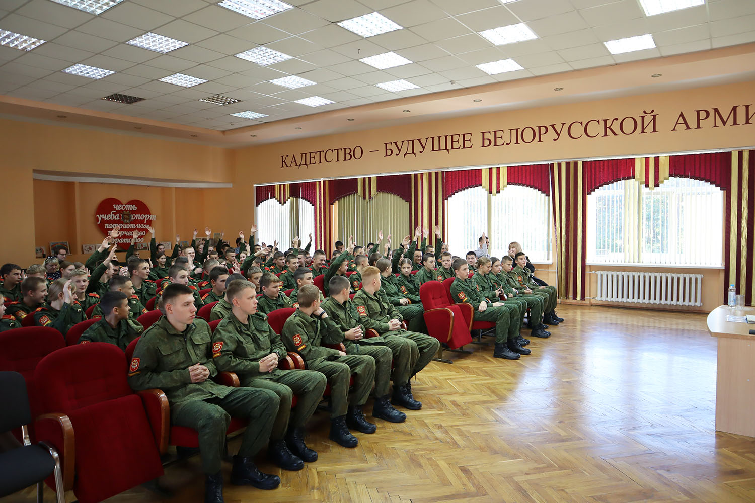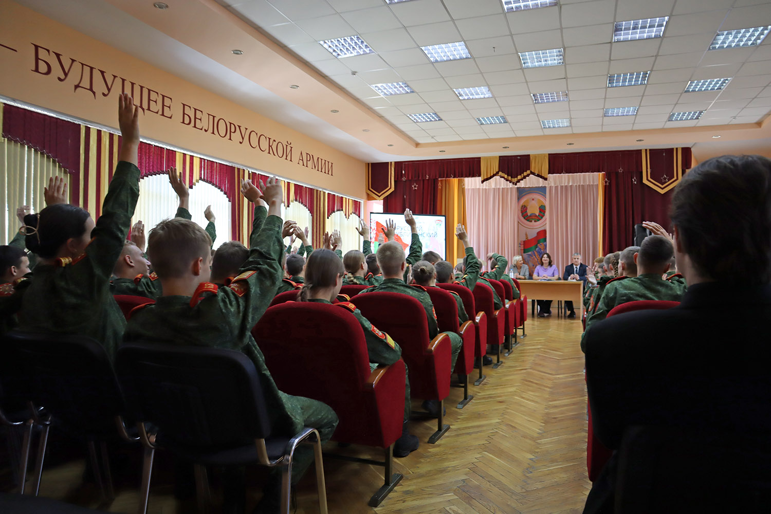 В работе собрания приняли участие: первый секретарь Гродненского райкома БРСМ Елена Грецкая, директор училища Сергей Владимирович Игнатович, заместитель директора по воспитательной работе Татьяна Васильевна Шендерук.