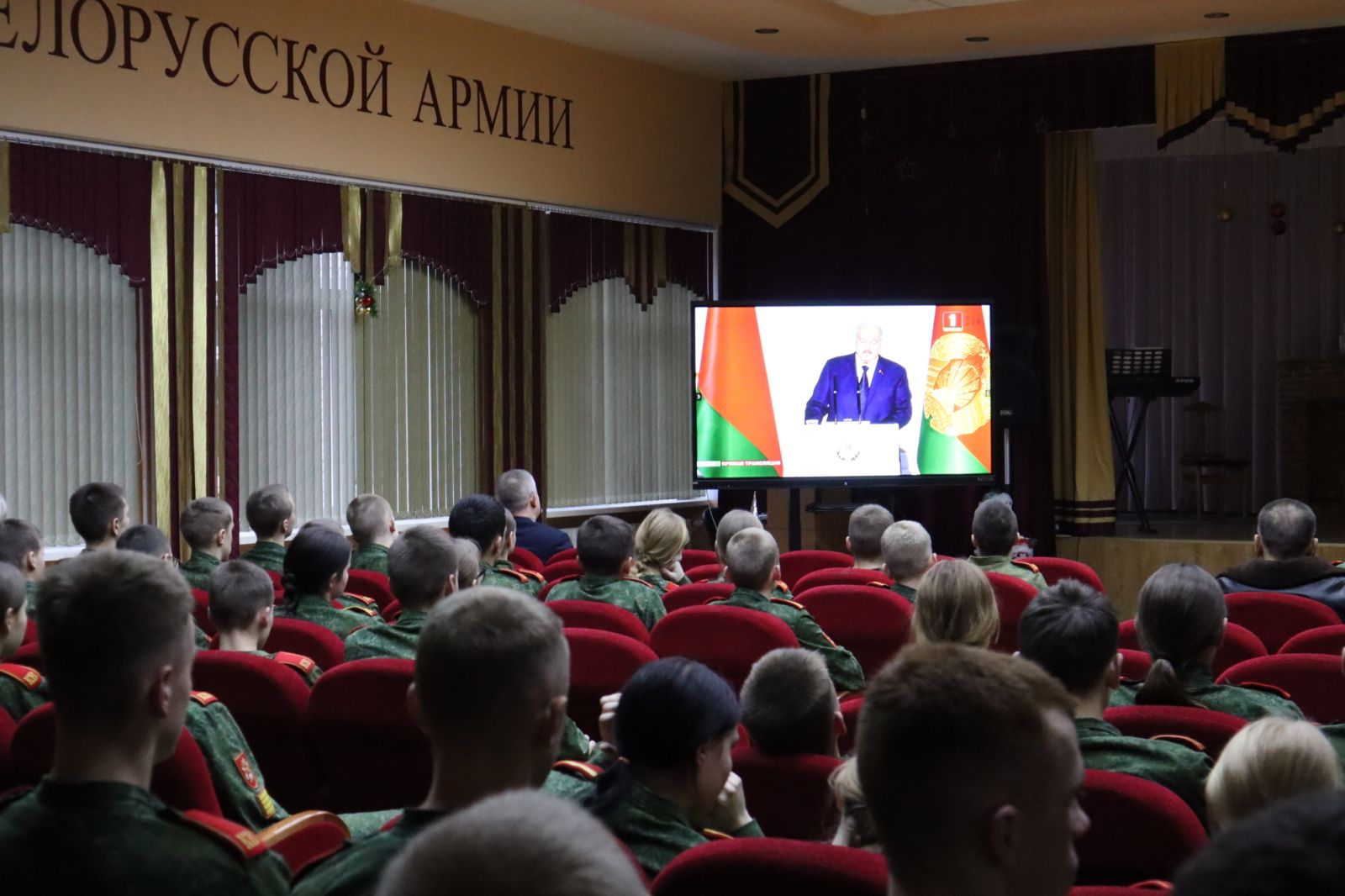 Сегодня, 18 декабря, в 16:00 кадеты и сотрудники училища просмотрели прямую трансляцию обращения Президента Республики Беларусь к белорусскому народу.