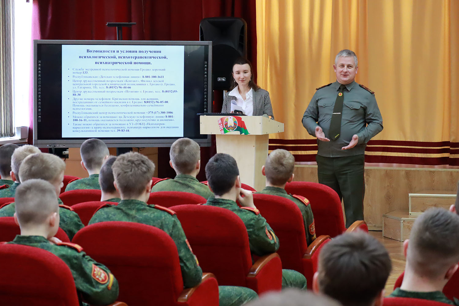 20.03.2026Сегодня в училище врач-психотерапевт Ольга Андреевна Швакель ГУЗ "Детская центральная городская клиническая поликлиника г. Гродно" провела беседу с кадетами на тему "Ценности нашей жизни".
