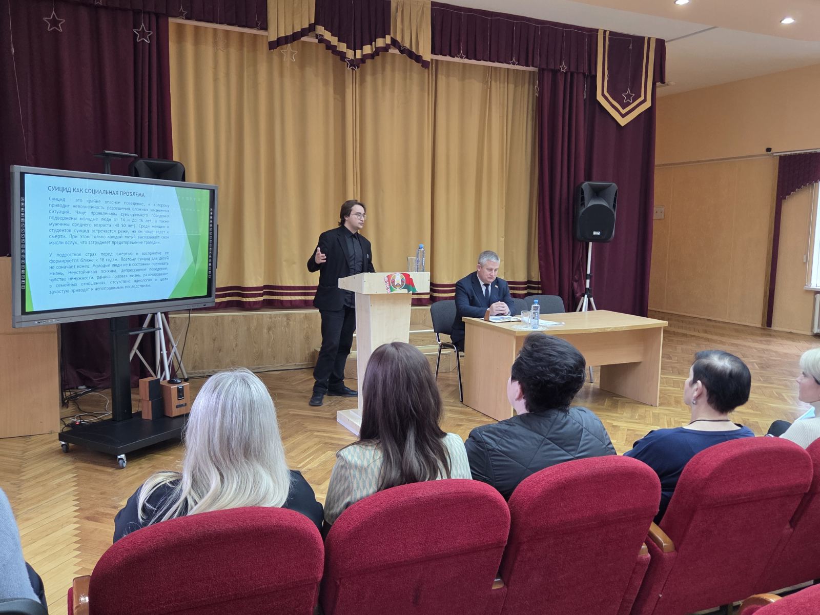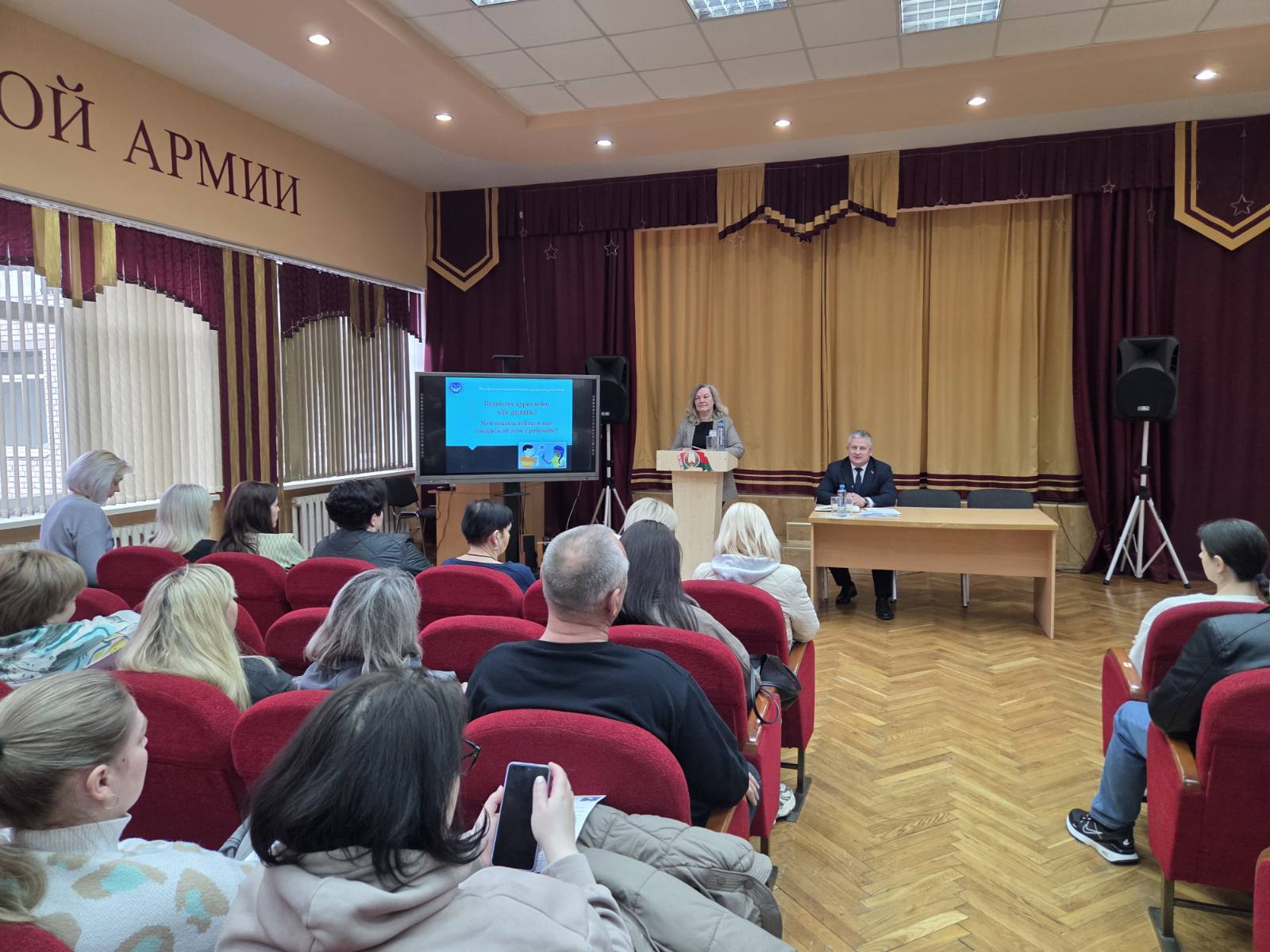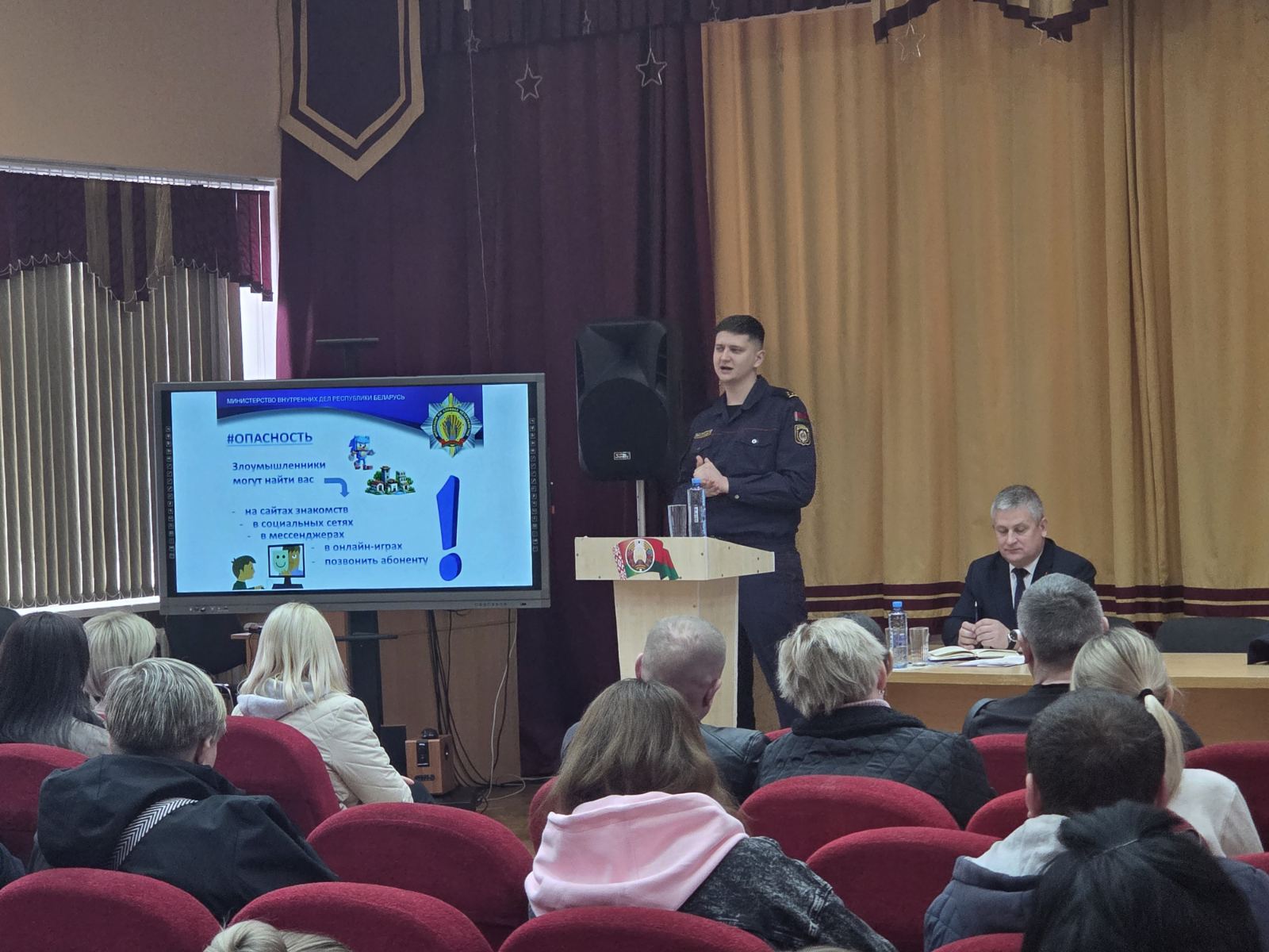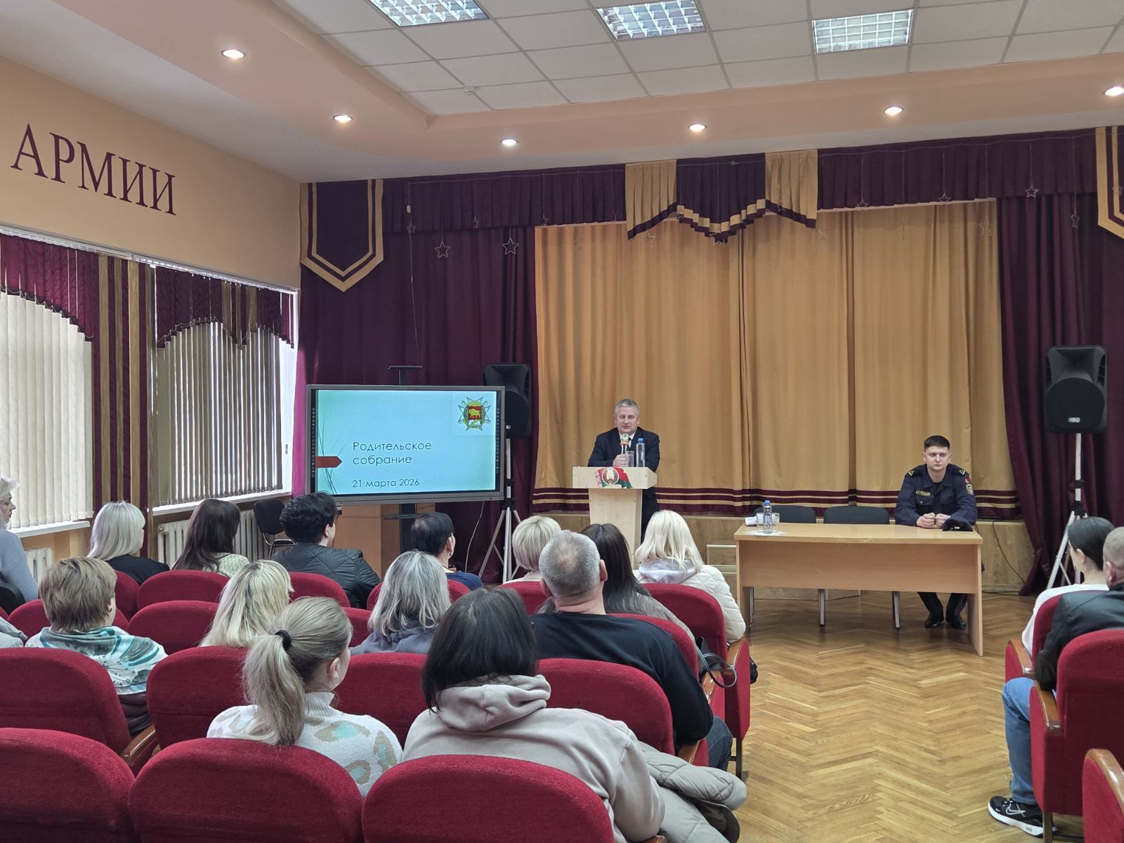 На собрании выступили: директор Гродненского областного кадетского училища Сергей Владимирович Игнатович, участковый инспектор ОВД Гродненского райисполкома Артемий Викторович Мисюк, педагог-психолог Роман Александрович Рацкевич и социальный педагог Галина Антоновна Обуховская.